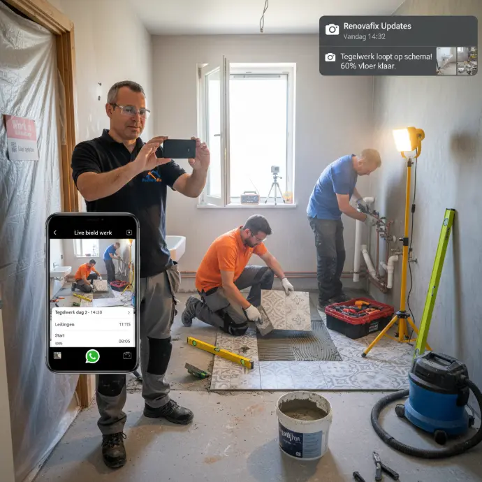 Onze vakmensen starten op de afgesproken datum. Elke werkdag sturen we u een korte foto-update, zodat u precies weet wat er gebeurt – zonder dat u achter de feiten aanloopt.