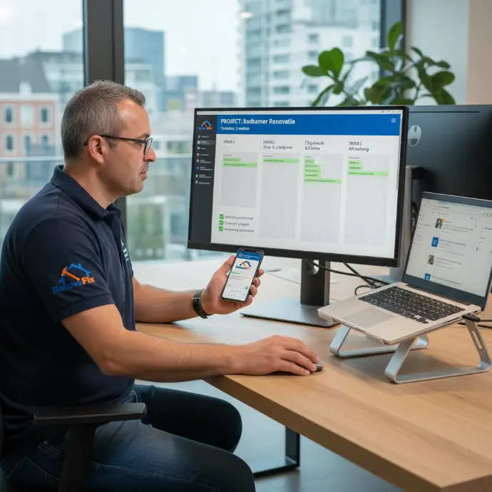Bij akkoord maken we een gedetailleerd weekschema. We reserveren materiaal, regelen vergunningen/containers en wijzen een vast aanspreekpunt toe die u gedurende het hele traject bereikt via WhatsApp of telefoon.