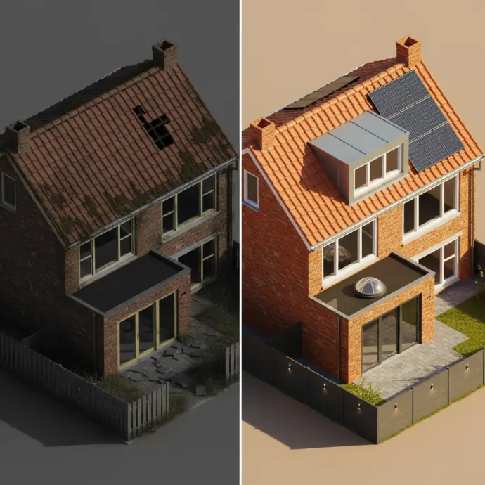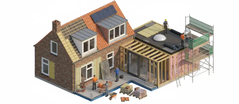 Renovafix ontwerpt, vergunt en bouwt uw aanbouw én vernieuwt direct het bestaande dak. Meer leefruimte, hogere woningwaarde en een energiezuinig dak – alles uit één hand.