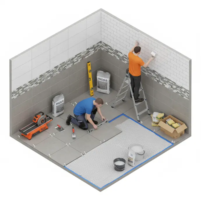 Van tijdloos wit tot eye-catcher-patroon. Onze tegelzetters snijden laser-recht, leggen waterproof en zorgen voor perfect vlakke voegen – ook in douches en op vloerverwarming.