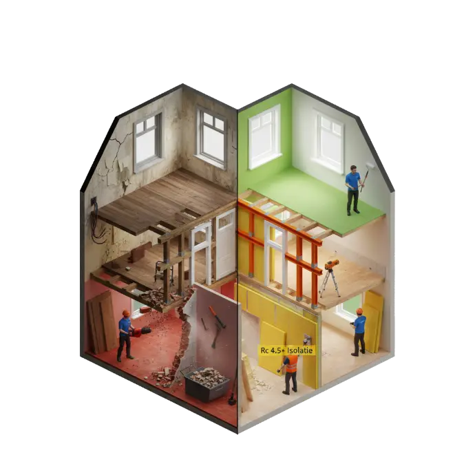 Benieuwd wat uw renovatie of klus gaat kosten? Vraag nu een vrijblijvende offerte aan. We komen bij u langs, bekijken de situatie ter plekke en sturen u binnen 24 uur een heldere prijsopgave – afgestemd op uw wensen en de staat van het werk. Zo weet u precies waar u aan toe bent, zonder verrassingen.