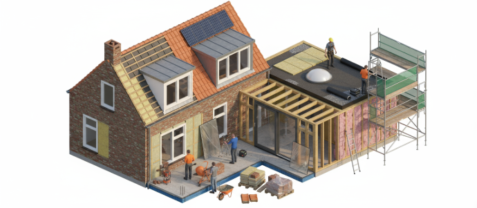 Binnenisolatie, buitenisolatie of sarkingisolatie. Ook geschikt voor bewoning tijdens uitvoering.
