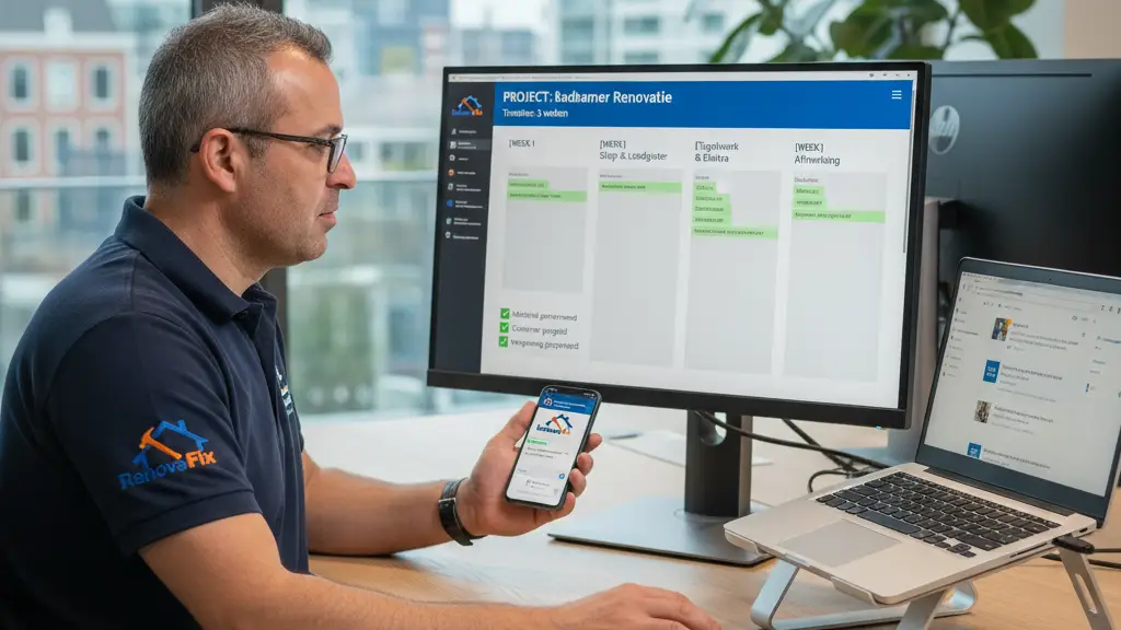 Bij akkoord maken we een gedetailleerd weekschema. We reserveren materiaal, regelen vergunningen/containers en wijzen een vast aanspreekpunt toe die u gedurende het hele traject bereikt via WhatsApp of telefoon.